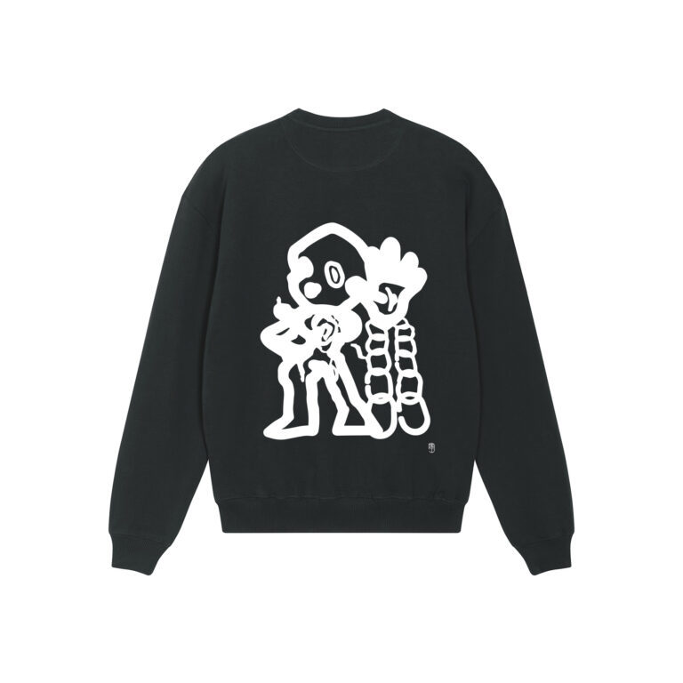 Na zadní straně mikiny je sítotiskem provedená grafika od Evy Rotreklové, zatímco na přední straně je výšivka z dílny Kirka Studio.