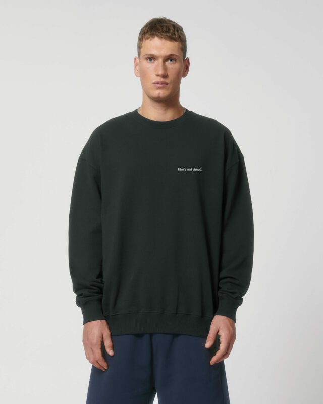 Zatímco na přední straně mikiny najdete vyšitý textík “Film’s Not Dead“, na zadní straně najdete sítotiskem vytvořenou grafiku od Evy Rotreklové. Tu Eva vytvořila přímo pro Polagraph a tuto mikinu.